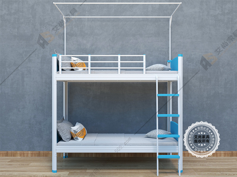 2、鋼制學(xué)生公寓床尺寸:1980x900x2100mm,(用材)支架尺寸:1.2mm冷軋鋼,床板尺寸:2.0mm多層板,床梯尺寸:20x20鋼材,凈重:48公斤(不含床板)。